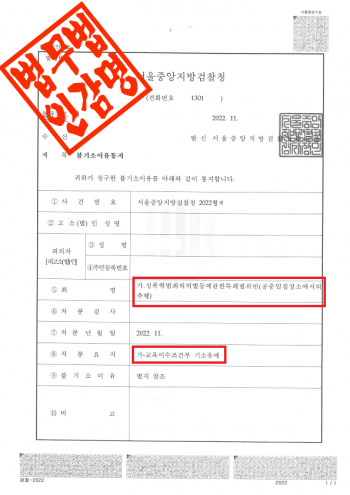 서울중앙지방검찰청은 이 사건에 대해 다음과 같은 사유로 불기소 결정을 하였습니다.