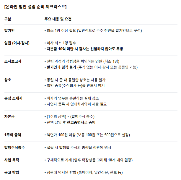 일단 기본적인 법인설립 절차에 대해 핵심만 짚어드릴게요. 먼저 1. 상호를 결정해야 합니다. 동일 시,군 내에 동종 업종의 동일 상호가 있으면 등기가 안 되니 주의해야 합니다. 인터넷 등기소 홈페이지에서 쉽게 중복 확인을 할 수 있습니다. 2. 자본금 및 액면가, 주식수를 설정해야 합니다. 자본금은 이론상 100원 이상이면 가능하나 사업등록증 발급과 같은 실무상 이슈로 인해 최소 100만원 이상을 추천합니다. 액면가는 100원이상이면 됩니다. 자본금이 1억 미만일 경우에는 액면가를 1,000원 이하로 정하시는 것이 좋습니다. 회사가 향후 발행할 수 있는 신주의 총량인 “발행할 주식의 총수”도 정해야 합니다. 그 상한은 없지만 여유롭게 설립 때 발행하는 주식 총수(자본금 나누기 액면가)의 100~1,000배를 추천드립니다.