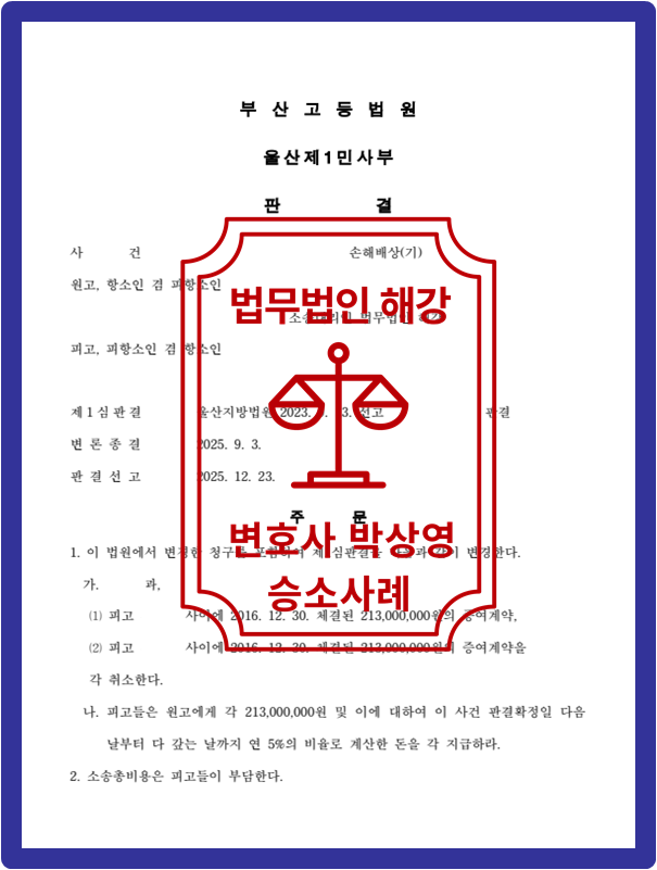 ![[1심판결 취소성공, 손해배상] 울산 민사법 변호사](/_next/image?url=https%3A%2F%2Fd2ai3ajp99ywjy.cloudfront.net%2Fuploads%2Ftitleimage%2Foriginal%2F5c2ec4dad664b0772b01bd4a-original.jpg&w=3840&q=75)