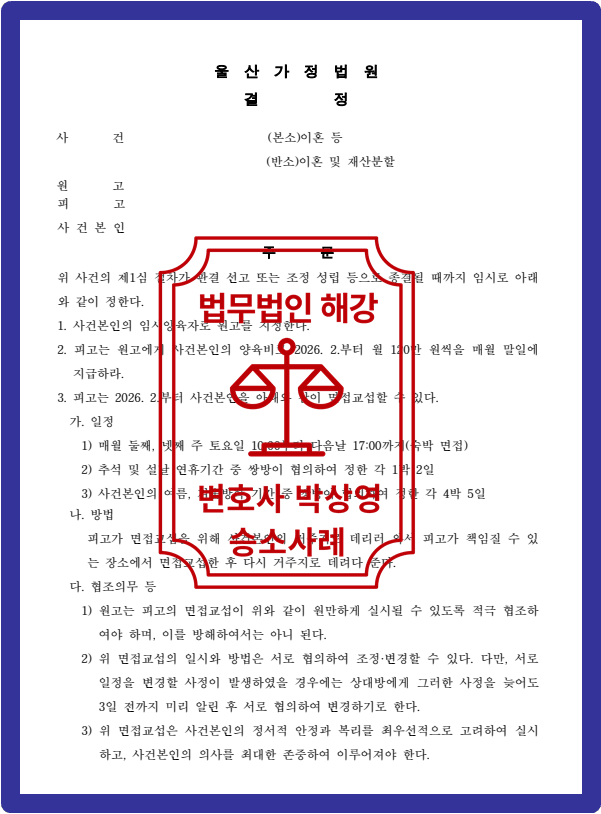 법무법인 해강에서는 법리적 검토와 준비서면 등을 통하여 의뢰인의 맞는 법률 조력을 하고자 노력하였고 [양육비 및 양육권 사전처분]에 성공 하였습니다.