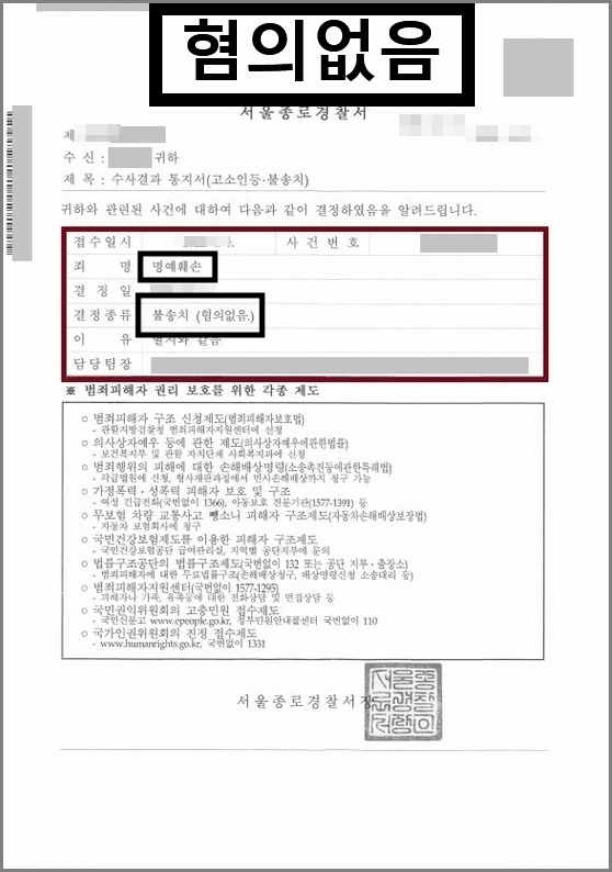 결국 경찰 단계에서 불송치(사건을 검찰에 보내지 않고 경찰에서 무혐의로 끝내는 결정)를 받아냈습니다.