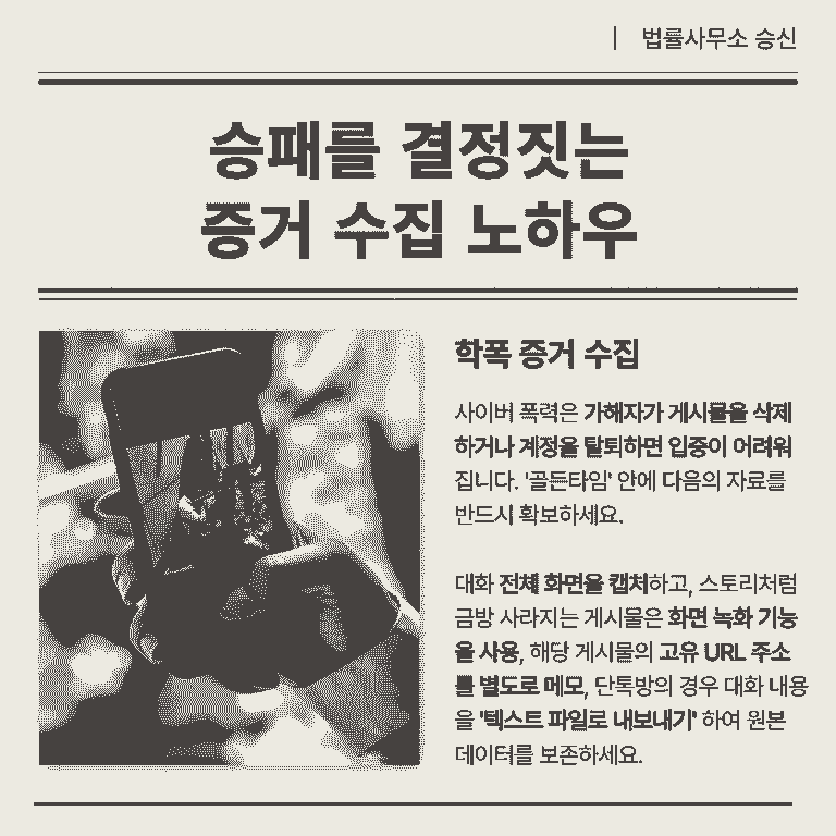 사이버 폭력은 가해자가 게시물을 삭제하거나 계정을 탈퇴하면 입증이 어려워집니다.