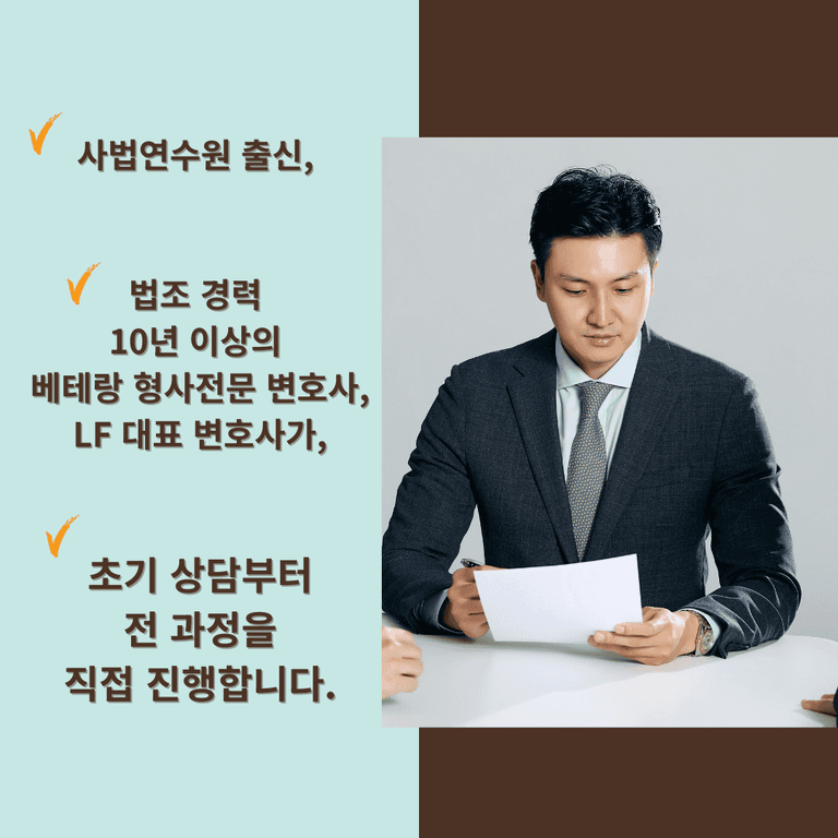 제 법적 전문성을 신뢰해 주시는 분들의 기대에 어긋나지 않도록 매 사건 전력을 다해 임하고 있으며, 최선의 결과를 위해 초기 상담부터 전 과정을 직접 수행하고 있습니다.