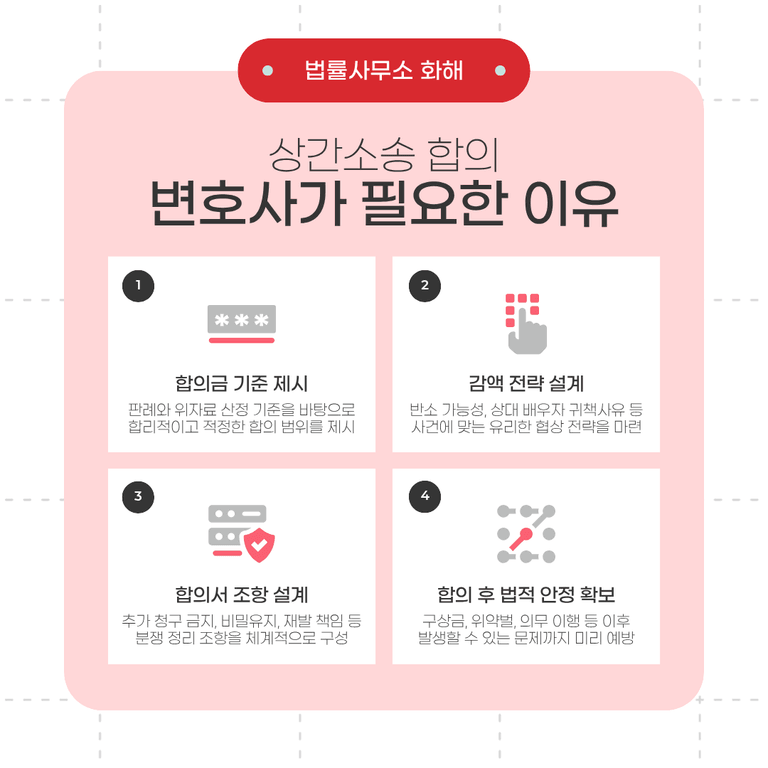 즉, 상간소송 합의에서 핵심은 “얼마를 줄 것인가”가 아니라 “어떤 조건으로 사건을 완전히 끝낼 것인가”입니다. 이 부분이 정리되지 않은 채 진행된 합의는, 사건을 끝내는 것이 아니라 또 다른 분쟁의 시작이 될 수 있습니다.