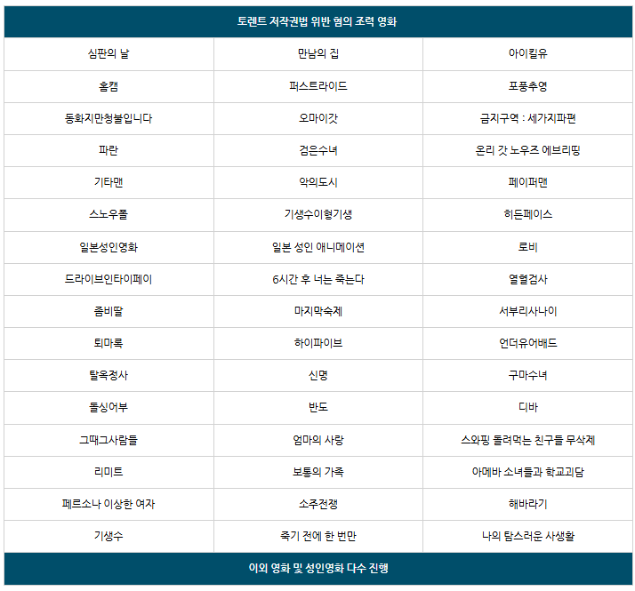 최근 토렌트 저작권 고소가 잦은 영화들