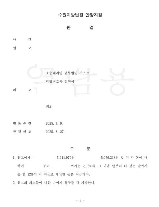 이 판결은 의뢰인이 최초에 청구한 금액 전체가 인용된 것은 아닙니다. 최초에는 입증자료가 부족했기 때문에 청구액을 과소하게 정했다가 소송 수행 과정에서 금융거래정보제공명령, 사실조회 등 여러 수단들을 활용하여 청구액을 점차 확장하였습니다.