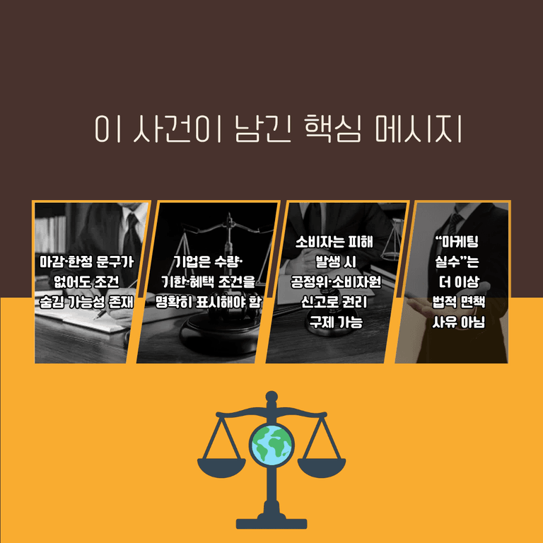 플랫폼이나 대형 통신사는 정보의 비대칭성을 이용해 소비자를 유인해서는 안 됩니다. 더 이상 마케팅 실수라는 변명은 법 앞에서 통하지 않기에 상품의 수량, 유효기간, 혜택의 조건 등은 반드시 눈에 띄는 곳에 명확하게 기재해야 합니다.