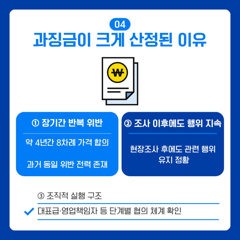 이번 과징금 규모는 단순한 매출액 기준이 아니라 여러 가중 사유가 종합적으로 고려된 결과로 볼 수 있습니다.