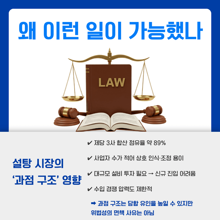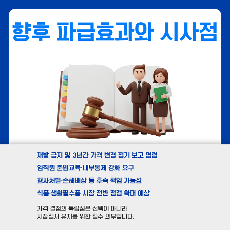 이번 제재는 생활필수품 시장에서의 경쟁 제한 행위를 적발하고, 과점 시장에서 발생할 수 있는 구조적 위험에 대해 경고적 의미를 가진 사례로 평가됩니다.