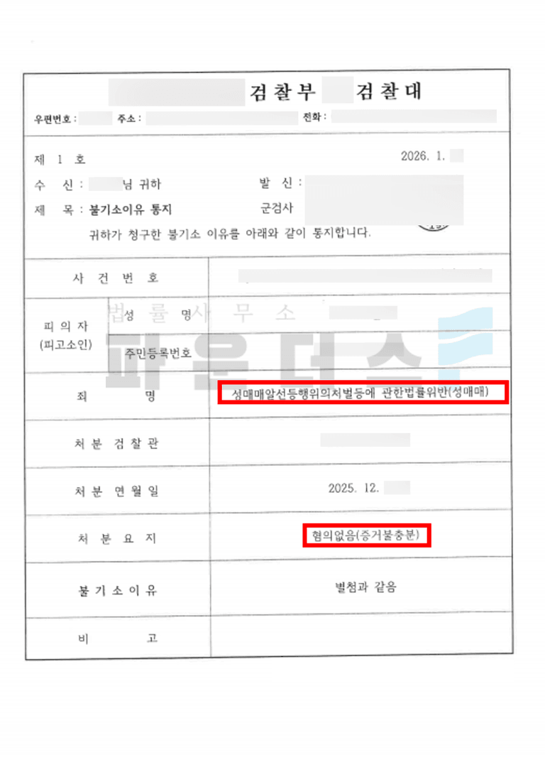 이후 변호인은 사건의 핵심 증거 부족과 피해자 진술 모호성을 지적한 의견서를 제출하며 의뢰인이 실제 성매매에 이르지 않았음을 법리적으로 강조했습니다.