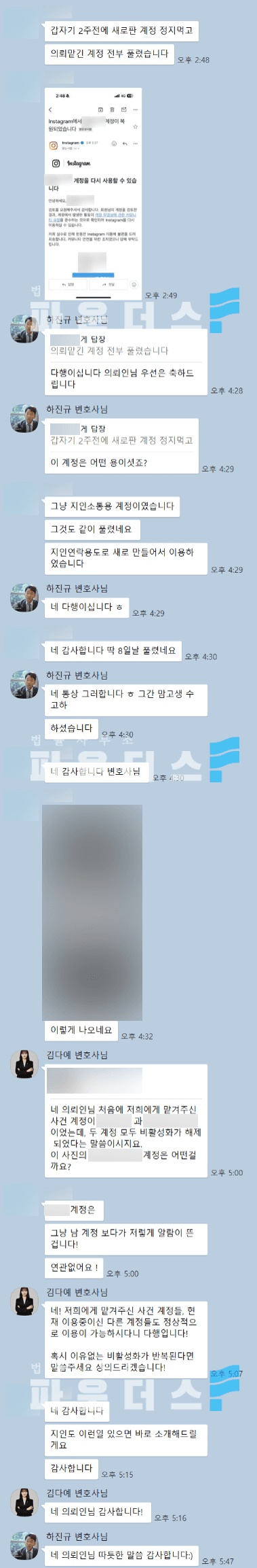 변호인은 해당 홍보 게시물이 허위 사실이 아님을 객관적 자료와 함께 논리적으로 정리한 내용증명을 발송했고 그 결과 비즈니스 계정과 연동 계정 모두 정상적으로 복구되었습니다.