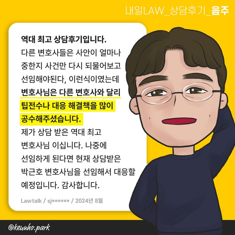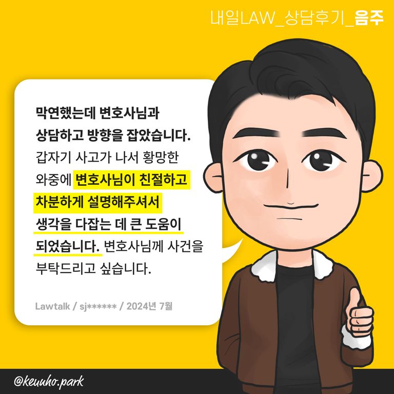 ![[음주운전 변호철학] 행운의 부적, 박근호 변호사 ✨️](/_next/image?url=https%3A%2F%2Fd2ai3ajp99ywjy.cloudfront.net%2Fuploads%2Ftitleimage%2Foriginal%2F5b696b60f677c8ae7920cef6-original.jpg&w=3840&q=75)