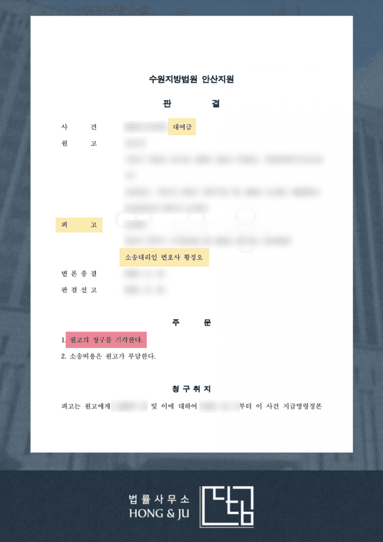안산민사전문변호사 의뢰인, 대여금소송 '승소'
