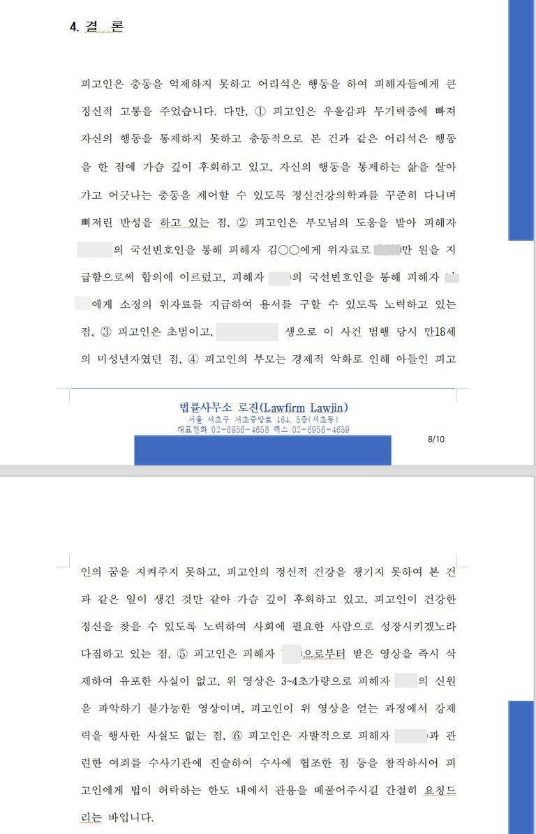 피해자의 나이가 10세, 11세에 불과한 초등학생이었고, 성착취물제작뿐만 아니라 성관계 즉 미성년자의제강간까지 있어서 재판 진행 과정에서 많은 어려움이 예상되었고, 합의를 하더라도 실형가능성이 매우 높았습니다. 그래도 의뢰인의 부모와 대화를 나누면서 최선을 다하기로 마음먹었던 사건입니다.