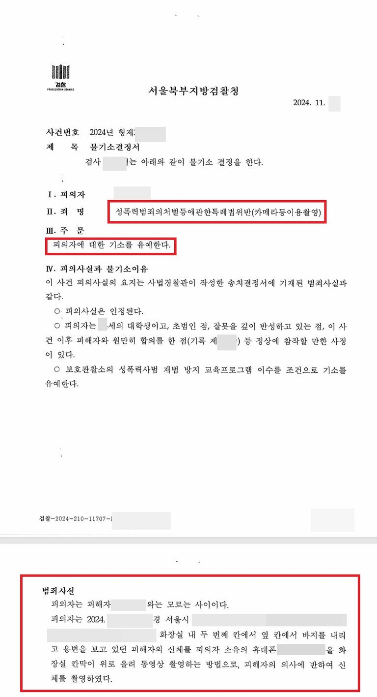 [성공사례] 카메라이용촬영죄 - 기소유예