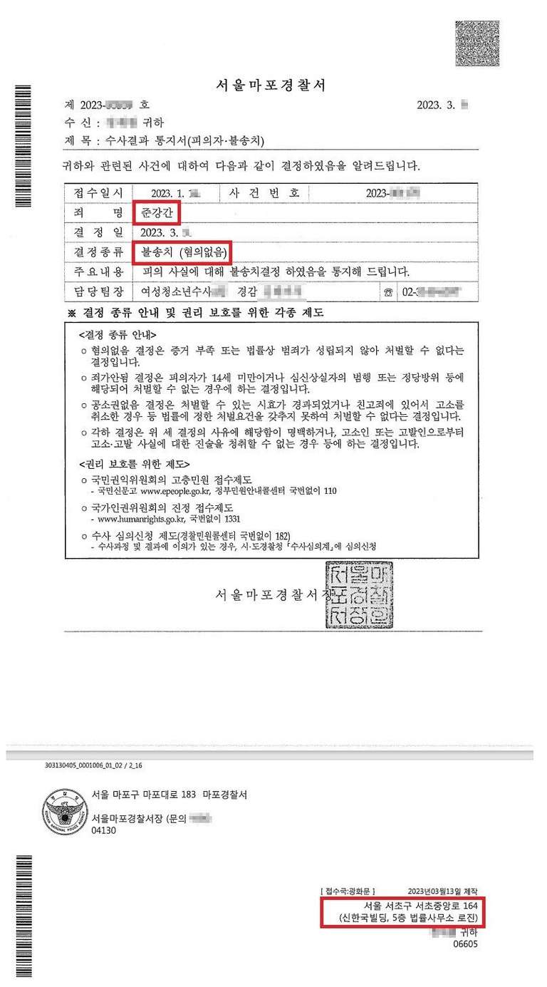 그리고 고소인과 나눈 대화는 반드시 보관하고 있어야 하고, 고소인과 불필요한 대화를 나누지 않기를 추천드립니다. 특히 "미안하다"라는 표현은 절대 쓰지 마시기 바랍니다.