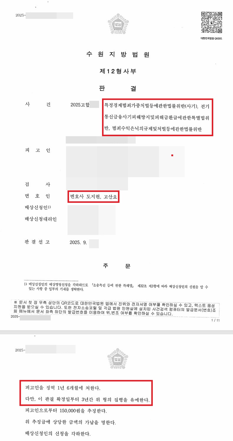 ![[집행유예] 보이스피싱 돈세탁, 구속상태 선임, 피해액 11억](/_next/image?url=https%3A%2F%2Fd2ai3ajp99ywjy.cloudfront.net%2Fuploads%2Ftitleimage%2Foriginal%2F5b19e447670e780b1799e834-original.jpg&w=3840&q=75)