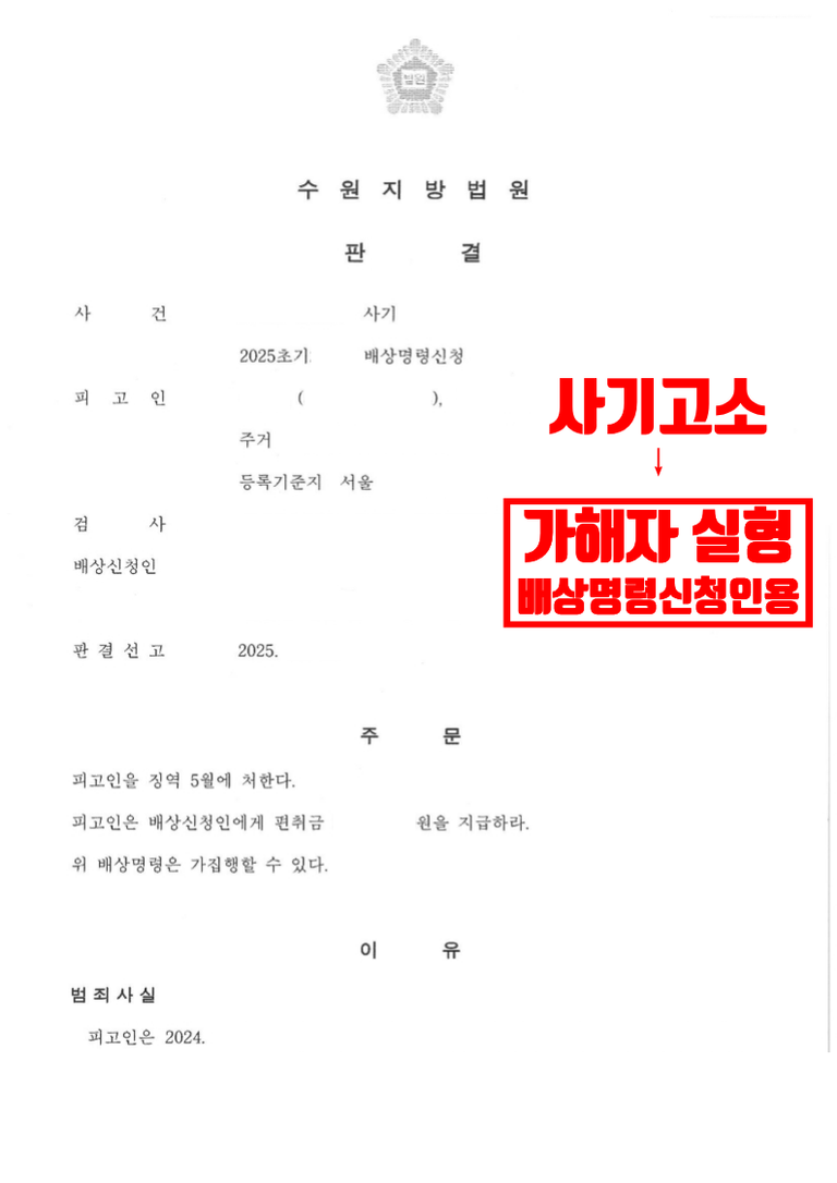 수원지방법원은 법률사무소 유(唯)의 형사전문변호사의 주장을 받아들여 가해자에게 5개월의 실형을 선고하였습니다. 또한 배상신청한 금액을 모두를 인용하여 의뢰인에게 가해자의 재산에 대한 집행권원을 부여하였습니다.