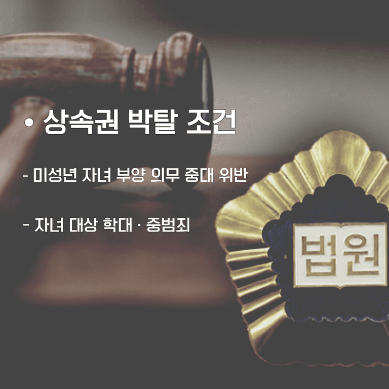 청구 절차 : 피상속인이 유언으로 상속권 박탈 의사를 남길 수 있으며 유언이 없더라도 공동 상속인이 가정법원에 직접 상속권 상실을 청구할 수 있습니다.