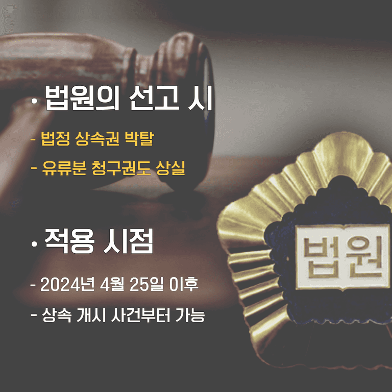 소급 적용 가능 : 2024년 4월 25일 이후 상속이 개시된 건이라면 법 시행 전의 행위에 대해서도 소급 적용이 가능합니다.