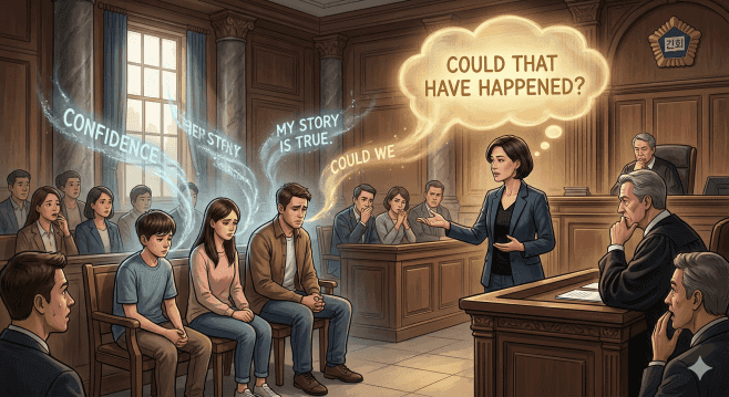 그 의문이 법정 안에 퍼지는 순간, 피해자들의 진술은 힘을 잃기 시작했습니다.