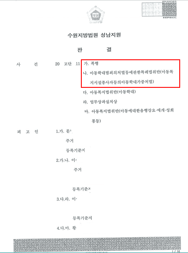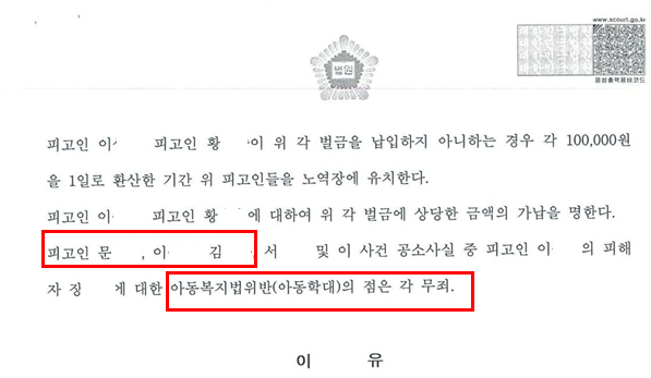 오늘은 제가 직접 변호하여 아동학대범죄의처벌등에관한특례법위반 및 폭행 등 모든 공소사실에 대해 무죄를 끌어낸 사례를 소개해 드립니다.