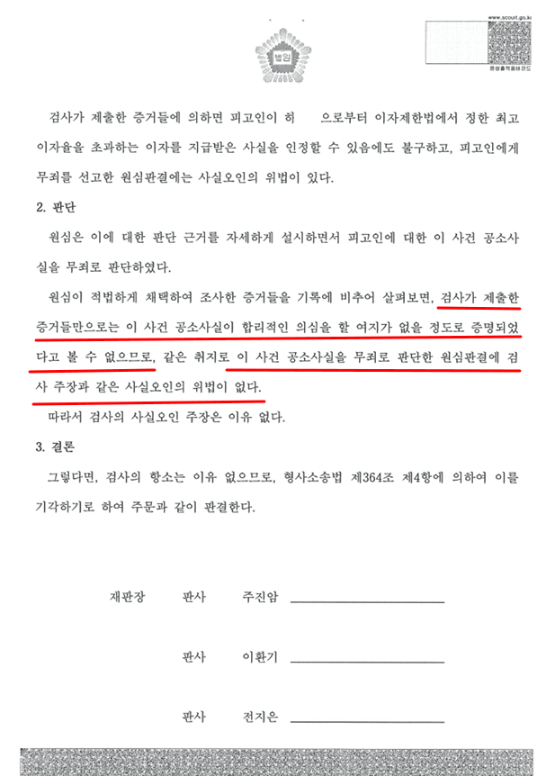 — 이자제한법 위반 1·2심 연속 무죄 확정기