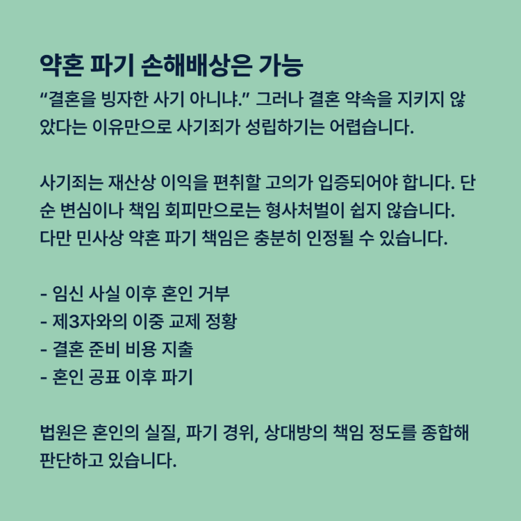 사기죄는 어렵지만, 약혼 파기 손해배상은 가능