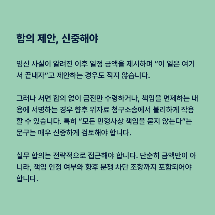 임신 사실이 알려진 이후 일정 금액을 제시하며 “이 일은 여기서 끝내자”고 제안하는 경우도 적지 않습니다.