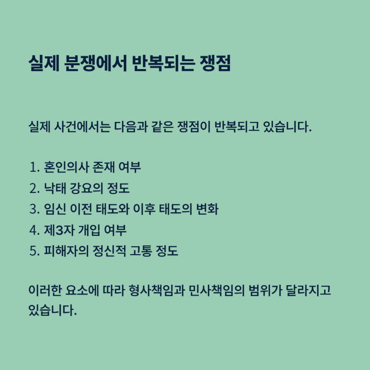 약혼 파기와 낙태 강요 문제는 단순한 연애 갈등이 아닙니다. 형사책임과 위자료 청구소송이 동시에 진행될 수 있는 사안입니다.