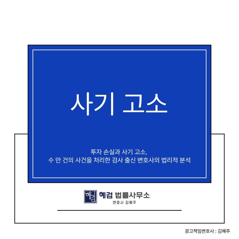 본 블로그의 게시물은 혜검 법률사무소 김혜주 대표변호사의 검토를 거쳐 작성되었습니다. 제공된 정보는 일반적인 법률 조언이며, 구체적인 사안에 따라 법적 판단이 달라질 수 있으므로 변호사와 직접 상담하시기 바랍니다. 광고책임변호사: 김혜주