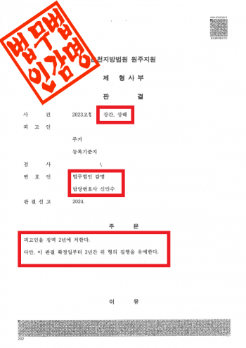 춘천지방법원 원주지원은 이 사건에 대해 다음과 같이 선고하였습니다.