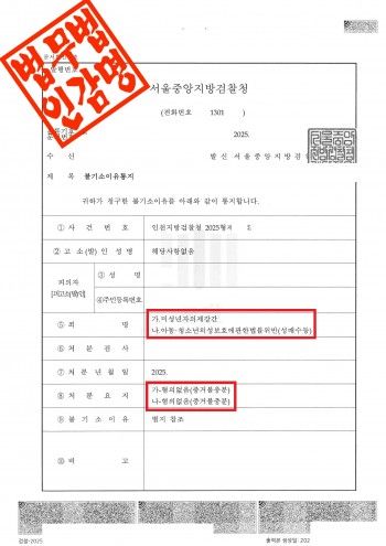 인천지방검찰청은 이 사건에 대해 다음과 같은 사유로 불기소 결정을 하였습니다.