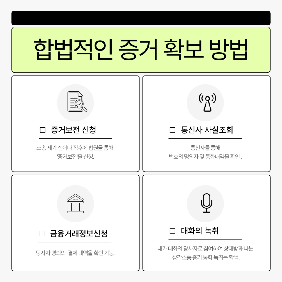 법의 테두리 안에서도 충분히 강력한 증거를 수집할 수 있습니다.