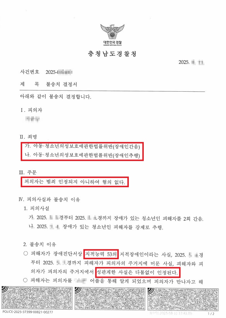 [성공사례] 아동청소년성보호에관한법률위반(장애인간음) - 혐의없음