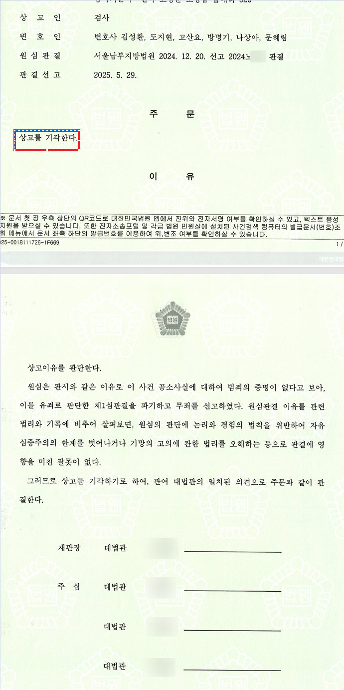 <대법원 무죄 확정 판결>