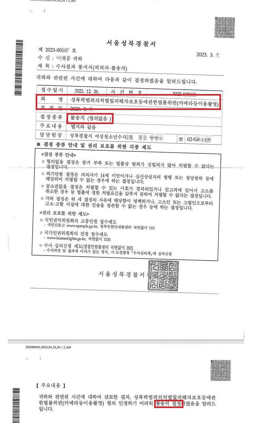 이번 포스팅은 로진의 성범죄 전담팀이 담당했던 사건 중 카메라등이용촬영죄 무혐의가 나온 사건입니다.