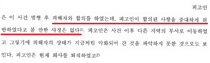 그러나 실질적인 피해회복이 이루어지지 않은 상태의 합의는 상급심에서 그 평가가 달라질 여지가 충분히 있습니다.