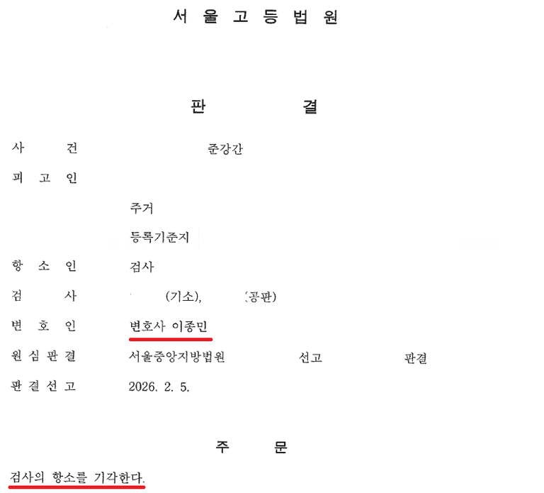 최종적으로, 의뢰인은 검사의 항소가 기각되면서 1심의 집행유예를 유지하여 실형을 면할 수 있었습니다.