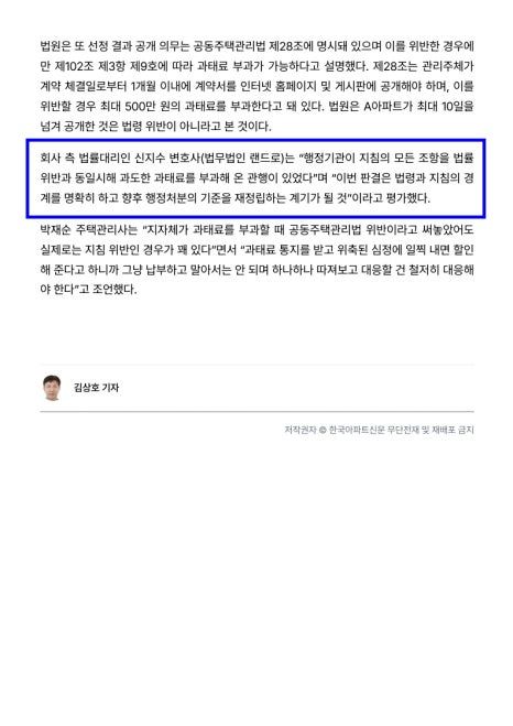 신문 인터뷰에서 소개된 사례처럼, 과태료 부과 등 복잡한 공동주택 분쟁을 소송 전 자문 단계에서 명쾌하게 해결하고 싶으시다면 저 신지수 변호사를 찾아주십시오. 현장에 맞는 최선의 해법을 찾아드리겠습니다.