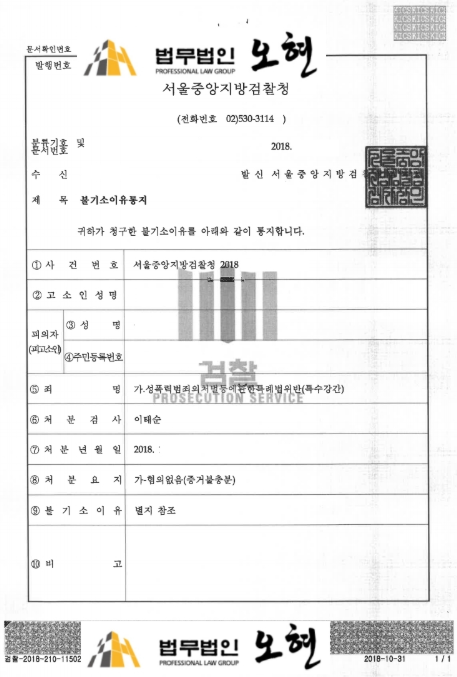 그 결과, 구속수사가 예상 될 정도로 중대성이 매우 큰 사건이었음에도 불구하고 최종적으로 의뢰인은 기소되지 않았으며, '혐의없음' 처분으로 사건을 종결지을 수 있었습니다.