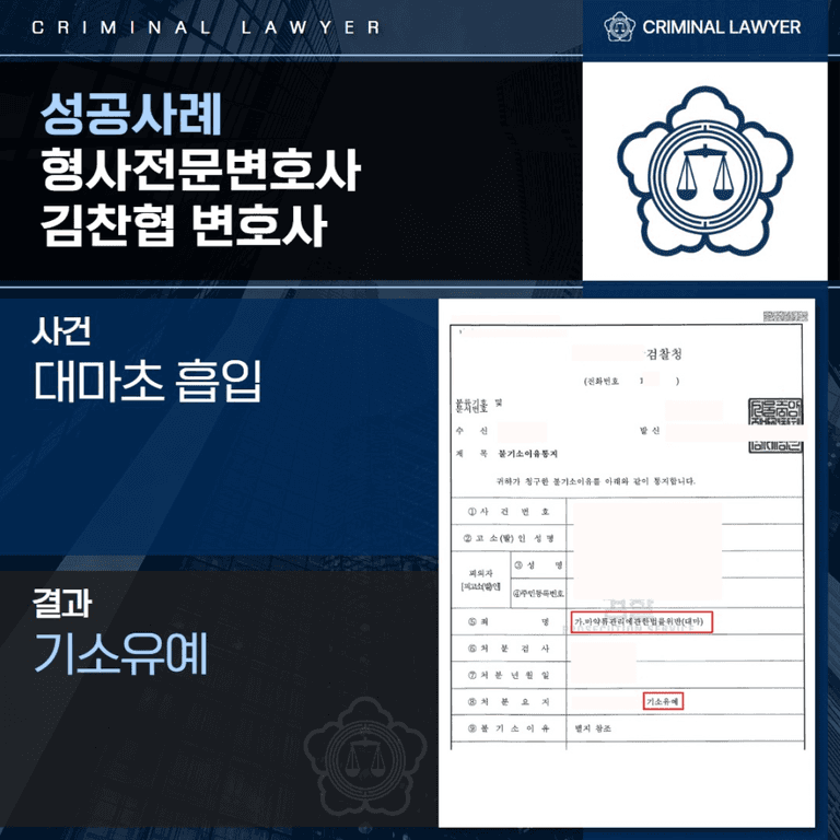 대마초 흡입 → 결과 : ‘기소유예’로 혐의 선처