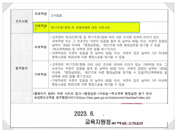 학교폭력 사안은 신고 내용으로만 가해학생에 대한 조치가 결정이 되지 않습니다.