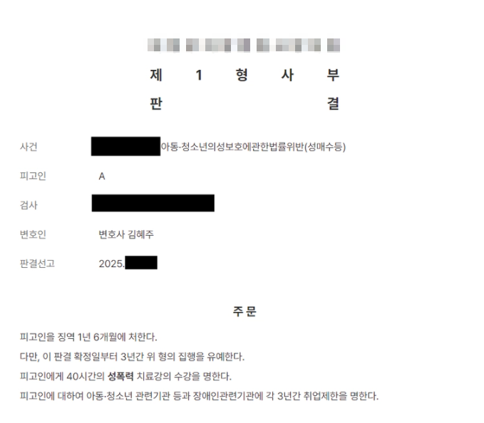본 변호인의 조력으로 미성년자와 성매매를 한 사실히 명백히 인정되는 데도 불구, 집행유예를 이끌어 내는 데 성공하였고, 의뢰인은 실형을 면하여 정상적인 사회생활을 할 수 있게 되었습니다.