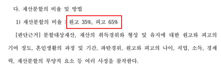🏆 위자료 방어 및 재산분할 기여도 65% 인정!