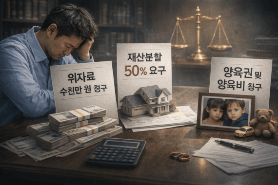 양측의 주장이 정면으로 충돌하는 상황에서, 단순히 이혼 여부만이 아니라 수억 원대의 분양권 처리, 대출 채무 인수, 삼성생명 보험계약 5건의 계약자 명의 이전, 자녀 2명의 양육 및 면접교섭까지 모두 해결해야 하는 사건이었습니다.