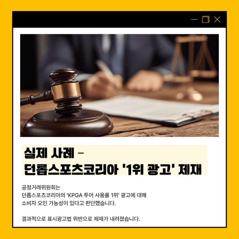 최근 공정거래위원회는 던롭스포츠코리아의 이른바 ‘1위 광고’에 대하여 표시광고법 위반으로 판단하고 제재를 부과하였습니다. 이 사건은 ‘1위’와 같은 배타적 표현이 어떠한 경우 위법 판단의 대상이 되는지를 보여주는 사례로 정리됩니다.