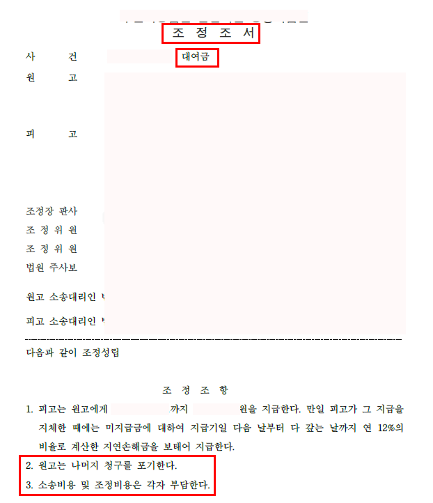 결론 - 법원 - 원고청구금액 50% 수준으로 조정성립