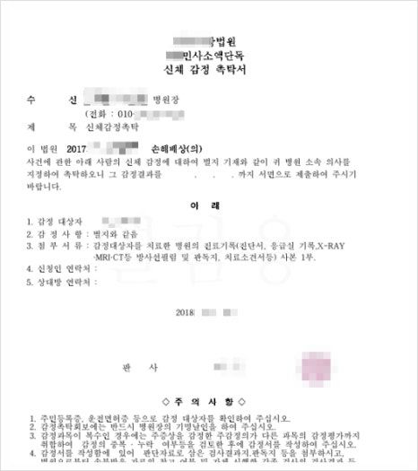 [태연법률사무소에서 진행한 사건의 신체 감정 촉탁서 등]