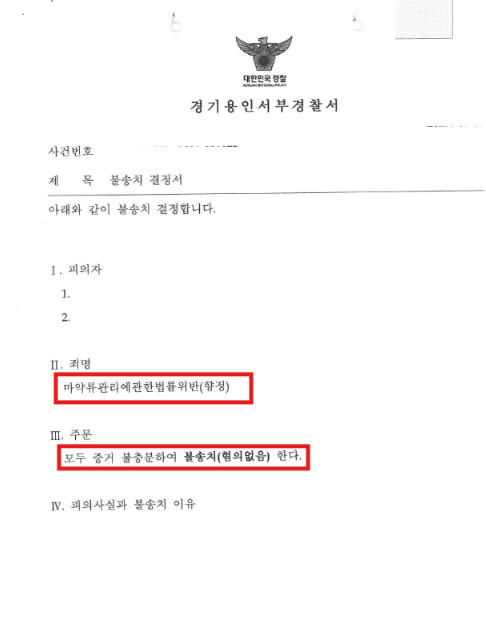 이어 경찰 역시 피의자가 클럽에 동석한 사실은 있으나, 자의적인 투약을 입증할 다른 혐의점이 없다고 판단하여 불송치(혐의없음) 결정을 내리며 사건을 종결했습니다. 🕊️